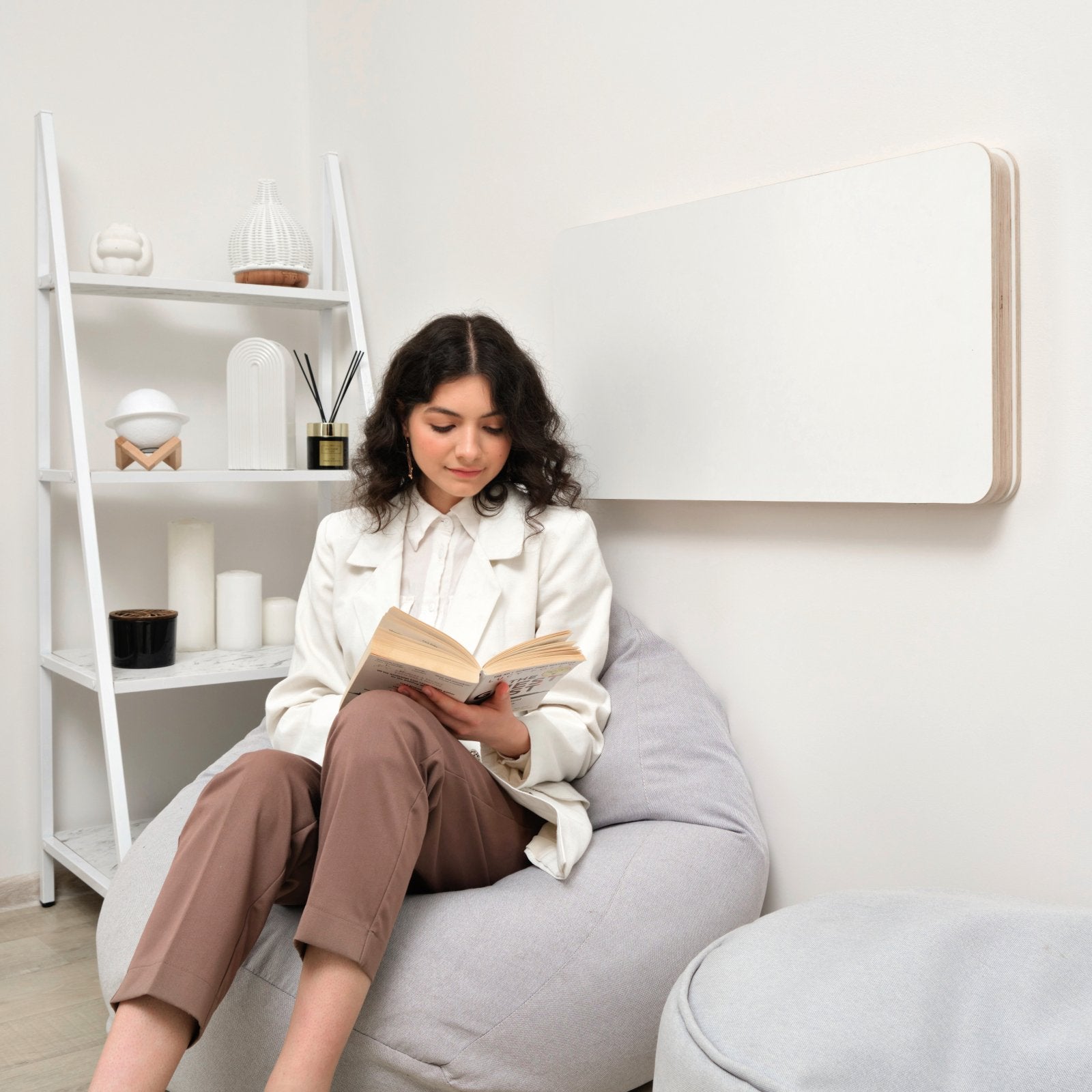 Ingeklapt slechts enkele centimeters diep – ideaal voor woonkamers, slaapkamers of gangkasten. Gebruik het als werkplek, studietafel of creatief hoekje. -